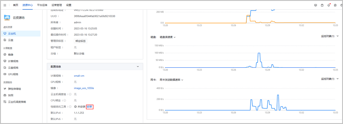 在之前版本中,ZStack Cloud已提供性能优化工具,集成多个提升云主机性能表现的工具和程序,包括内部监控agent、VirtIO驱动 (仅Windows云主机)等。