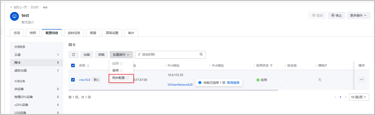 例如,用户选择无DHCP服务的网络创建云主机,创建完成后安装性能优化工具,并在网卡操作列表点击同步配置,云平台上设置的参数就能配置进网卡并实际生效。