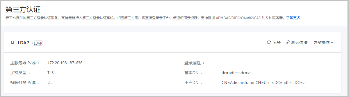 ZStack Cloud 4.6.0开始,企业管理将不同类型的第三方认证服务器添加流程进行拆解和优化,增强用户使用体验。