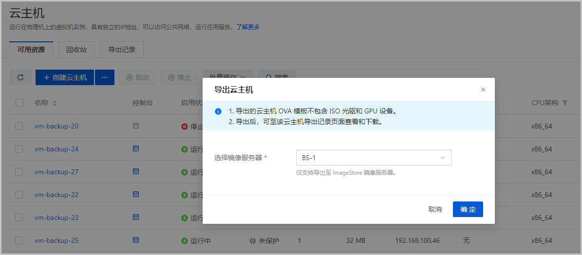 ZStack Cloud 4.4.6中,支持将已停止的云主机以ova格式导出至ImageStore镜像服务器。对于已导出的云主机文件,支持复制URL或直接下载至本地。