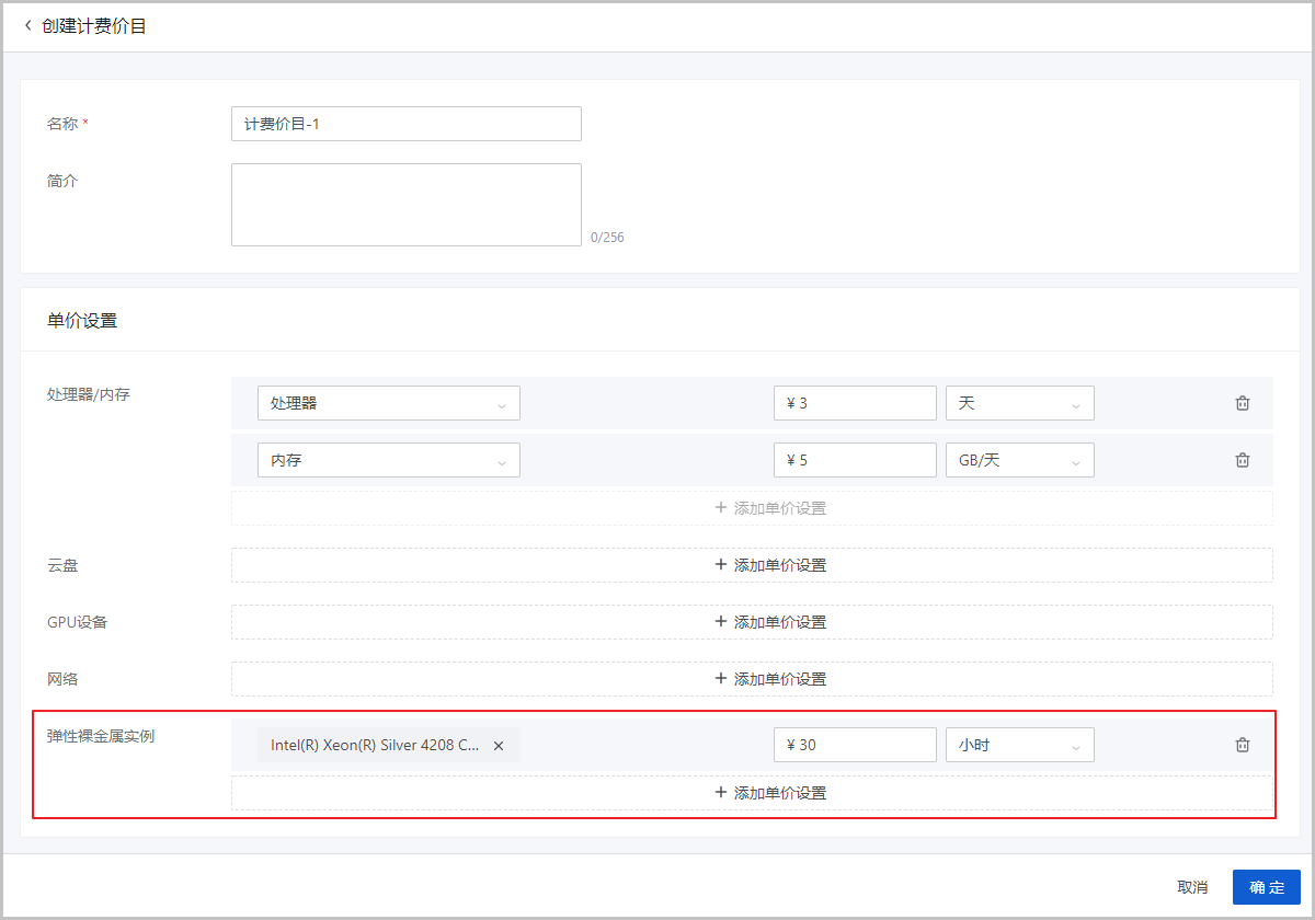 ZStack Cloud 4.2.0新增支持弹性裸金属实例计费。以弹性裸金属规格粒度设置计费单价,即可对使用该规格裸金属节点的弹性裸金属实例进行计费,满足用户对不同资源计费场景的需求。