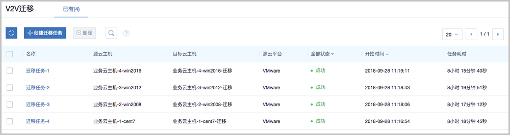 • 支持多种操作系统的云主机进行V2V迁移,包括:CentOS 7.x、Windows Server 2008 R2/2012 R2/2016。