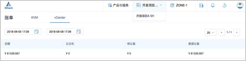 企业管理账号体系(项目负责人/项目管理员/项目成员)可查看本项目下的vCenter资源费用信息。如图 3所示: