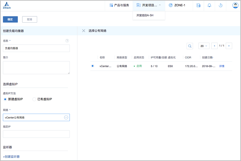 企业管理账号体系(项目负责人/项目管理员/项目成员)支持使用vCenter网络服务,包括:虚拟IP、弹性IP、端口转发、负载均衡。如图 5所示: