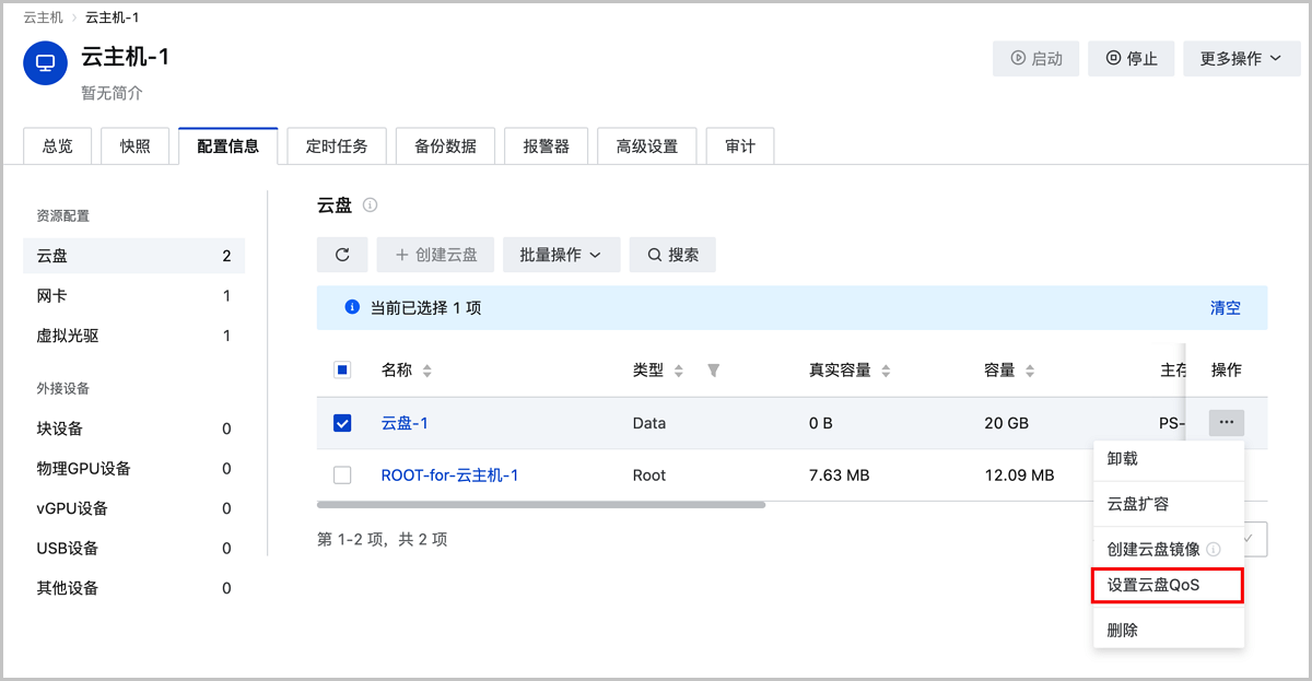 本章节介绍如何设置云主机根云盘QoS并验证。